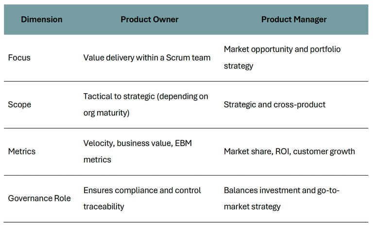 In mature enterprises, the Strategic PO often bridges the two roles, translating strategy into compliant, incremental execution.