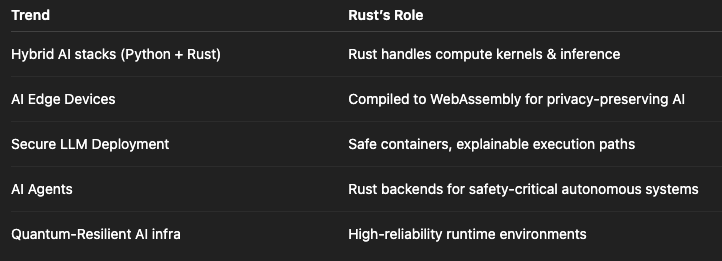 2025+ – Rust becomes the performance layer of AI infrastructure