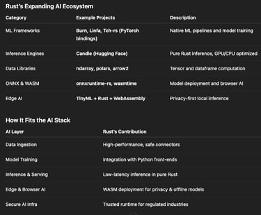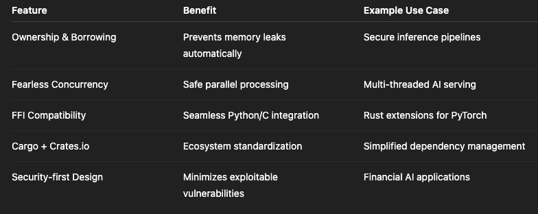 In a world where AI is everywhere — from your browser to your banking system — Rust ensures that intelligence runs fast, secure, and accountably.